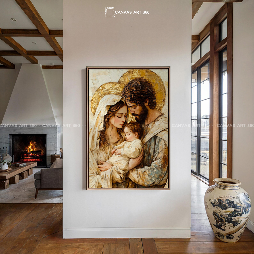 Tranh Thánh Gia Với Vòng Tròn Cân Bằng Vàng Trắng