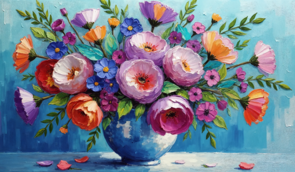 Tranh Canvas Bình Hoa Đa Sắc – Phong Cách Sơn Dầu Đắp Nổi Hiện Đại