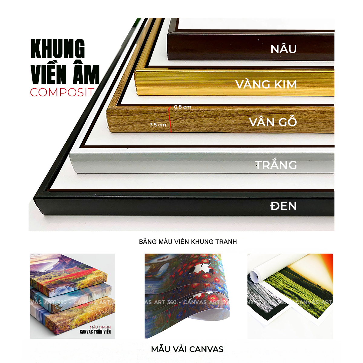 Khung tranh: Được làm từ chất liệu Composite siêu nhẹ, bền bỉ, chống cong vênh và không lo mối mọt.